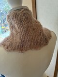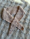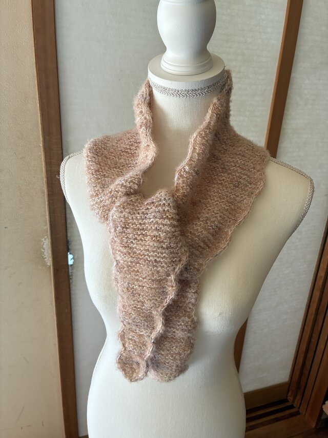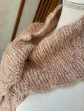 エクストラファインメリノシングルヤーンとアルパカ配合のふわふわループヤーンの引き揃えで編んでいます