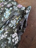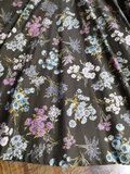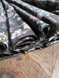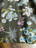 色は濃いカーキに多色多種の花束柄