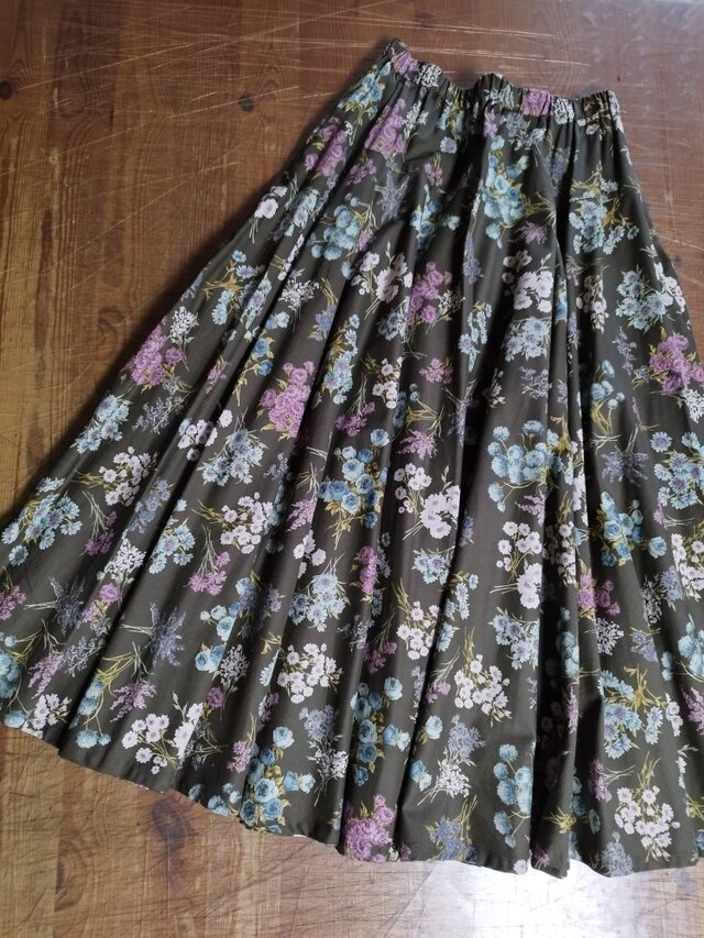 多種類の花束を散りばめた木綿のサーキュラースカート