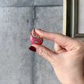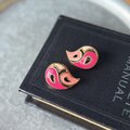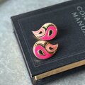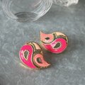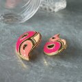 鮮やかなフューシャピンクと優しいピーチカラーのエナメルの、曲線が美しいペイズリーモチーフ。オープンワークデザインと、カラーリングがサイケデリックな個性ある存在感を強調し、お顔周りを印象的に彩ってくれます。