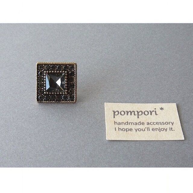 アンティークゴールド色の枠にダークグレーのビジューがたくさん。