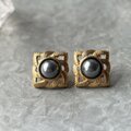 "Perlesque Elegance"とタイトルのついた、ゴールドトーンブラックパールピアス。