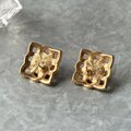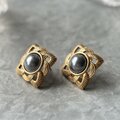 ロープでスクエア型に編んだゴールドトーンのオープンワークフレームに、シルキーで深みのあるフェイクブラックパールとの組み合わせが、ゴールドの重厚感を引き立てる、大人っぽく洗練されたデザイン。