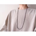 シックな色調が美しいブラックパールのロングネックレス。