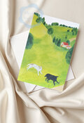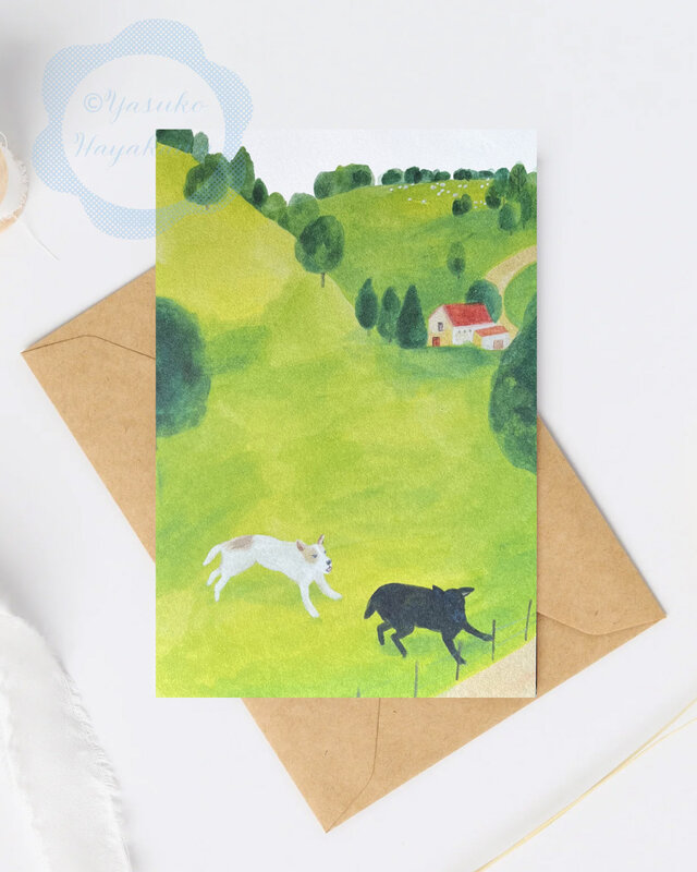 (73)2匹の犬がいる高原の風景のポストカード 3枚セット