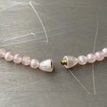 レトロ可愛いピンク色のヴィンテージネックレス。シェルのようにキラキラと輝くビーズがお顔まわりを明るい雰囲気にしてくれます。クラシカルからカジュアルまで幅広いスタイルに合わせていただけます。