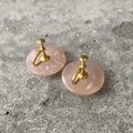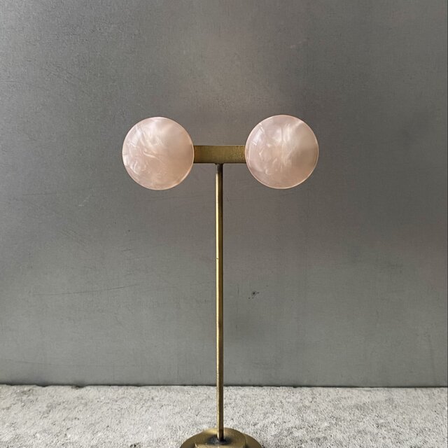 レトロ可愛いピンク色のヴィンテージイヤリング。シェルのようにキラキラと輝きお顔まわりを明るい雰囲気にしてくれます。クラシカルからカジュアルまで幅広いスタイルに合わせていただけます。