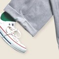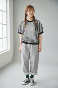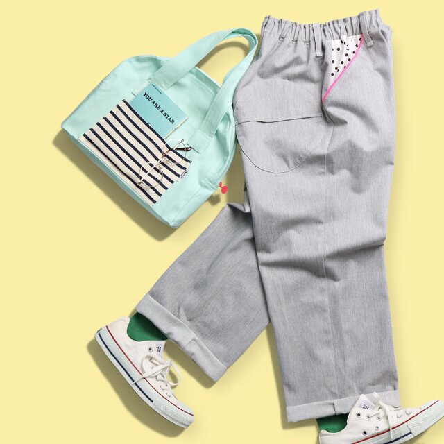 ◯パンツ素材はライトグレーに黒の杢調の撚り糸で軽くなり過ぎないのでどんなTOPSも合わせやすいです