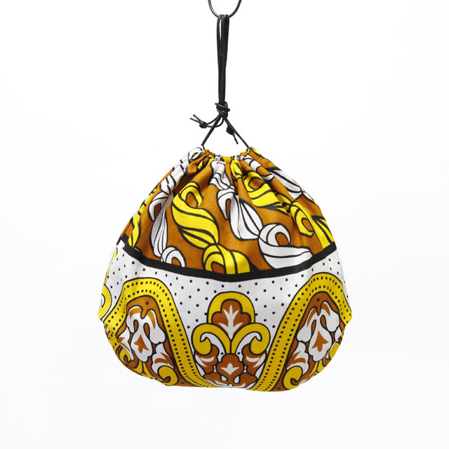 コロンとした形がかわいい、カンガの大きな巾着。