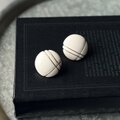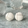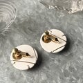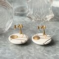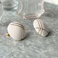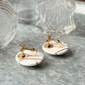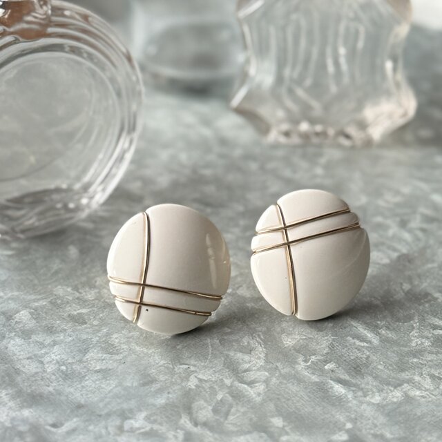 ホワイトアクリルカボションにゴールドワイヤーを巻きつけたようなグリッドデザインがモダンなイヤリング。