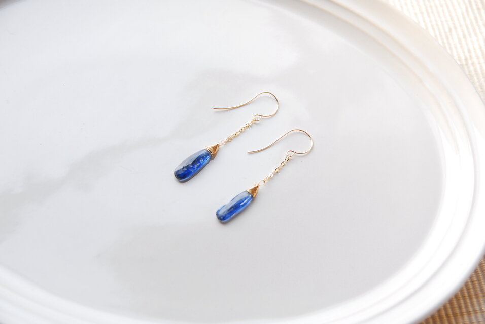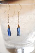 細長いペアシェイプのカイヤナイトのピアス14kgf