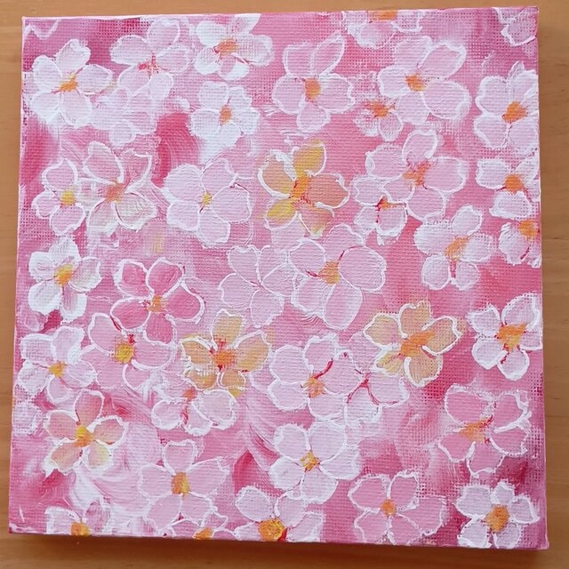 サイズは150×150×10mmのキャンバスでアクリル絵の具画です