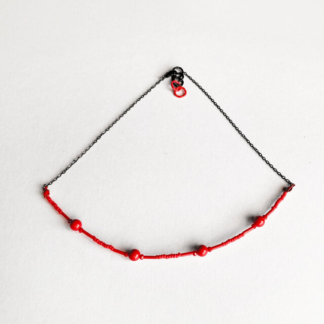 鮮やかな赤が印象的な、繊細でミニマルなネックレスです。