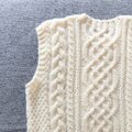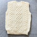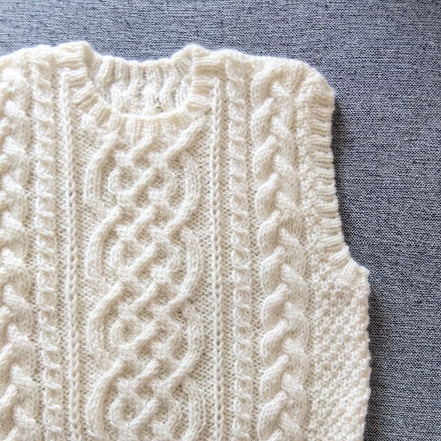 生成りの極太毛糸で編んだアラン模様の手編みベスト。