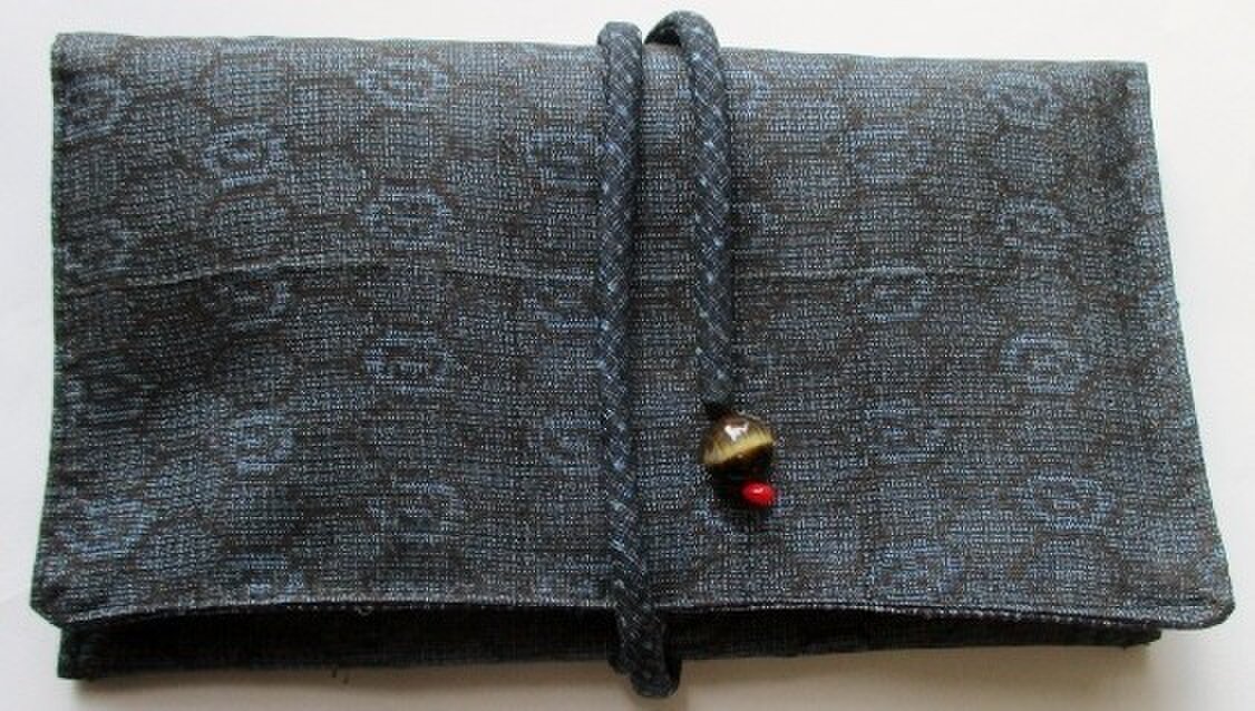 8623 藍大島紬の着物で作った和風財布・ポーチ