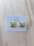 猫をモチーフにした、精巧で愛らしいデザインの水引ピアスです。