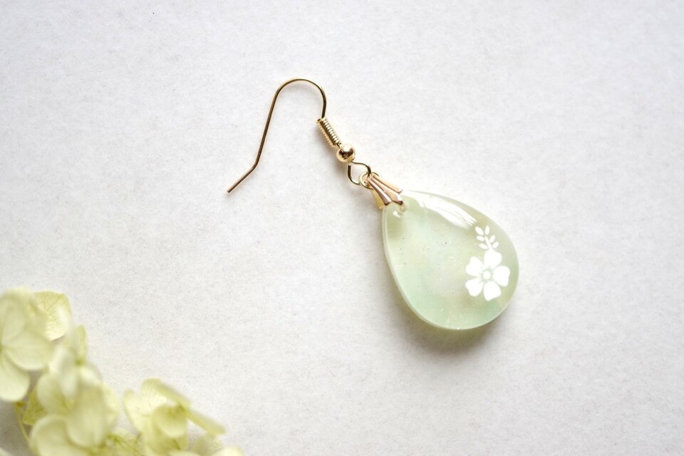レジンアート 雫のマーブルピアス〈オパールグリーン〉