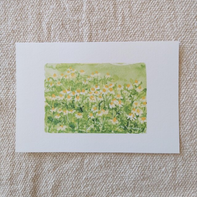 目の前に咲くカモミールと春の光を感じて描きました。