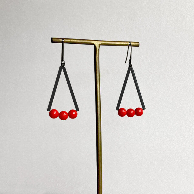 黒と赤のコントラストが印象的なピアスです。