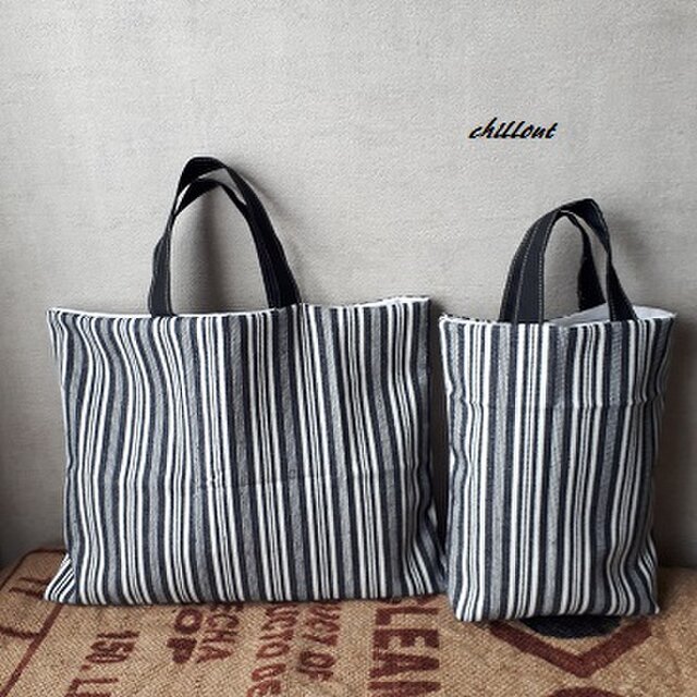 黒のランダムボーダーの入園バッグセットが出来上がりました!