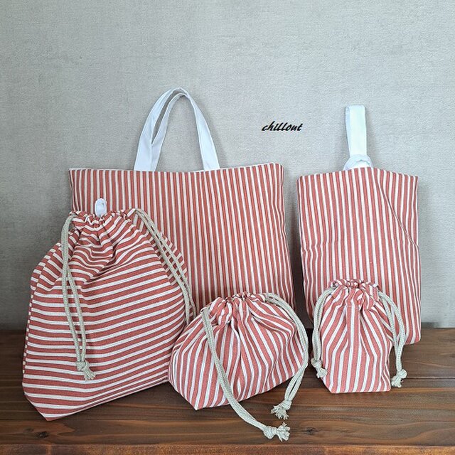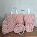 レッドストライプの入園バッグ5点セットが出来上がりました!