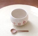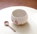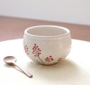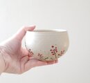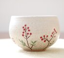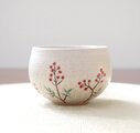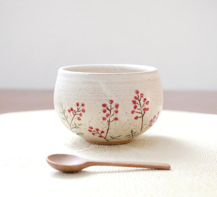 ころんと丸いお湯呑みの形に成形後、南天をイメージした彫り模様を施しました。