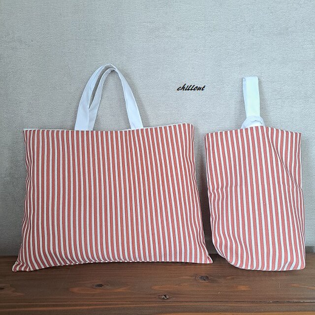 レッドストライプの入園バッグ2点セットが出来上がりました!