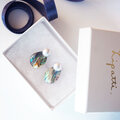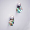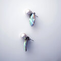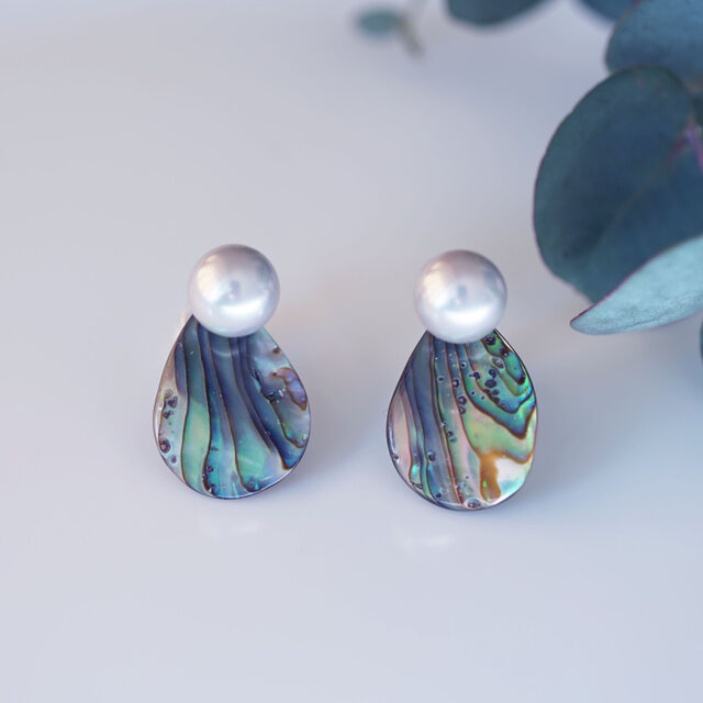 人魚のしっぽ★オーロラグレイ貝パールとアバロンシェルのサージカルステンレスピアス ~人魚のしっぽ