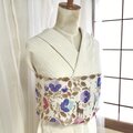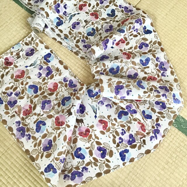 三色菫=パンジーをメインモチーフに、鳥や鹿、うさぎなどの動物が隠れているかわいらしい図案です。パンジーは昔から「愛の花」として人々の想いを載せてきた花です。
