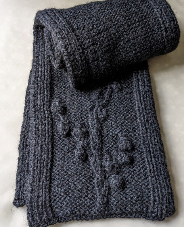 寒い日のお出かけが楽しくなる、Creamy Eden人気の柄、蕾模様いっぱいのウール100%の手編みマフラーです。