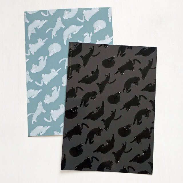 表はグレーに黒猫、裏はブルーグレーに白猫のデザインです。
