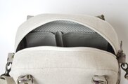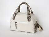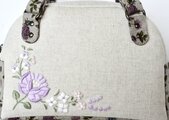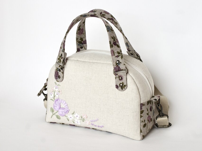 生成りの綿麻生地に、ハンガリーのカロチャ刺繍風の刺繍を入れた小さいボストンバッグを作りました。