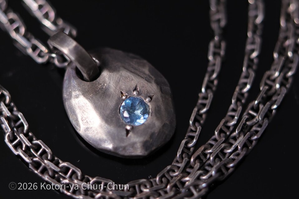 【神石】Yashのブラジル産非加熱・サンタマリアアクアマリン・ペンダント(チェーン付き)【カンテラジェム・蛟】