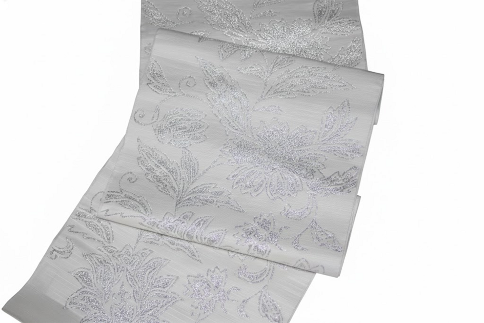 ■革新の素材「麻絹(まきぬ)」:一年中、心地よく。 経糸に絹100%、緯糸に麻100%を使用した「麻絹」は、まさに現代の理想的な帯地です。 麻の優れた通気性と、絹のしなやかな光沢を併せ持つことで、**「年間通して(オールシーズン)」**の着用を可能にしました。夏は涼やかに、冬は絹の重厚感で。季節の変わり目を気にせず、お気に入りの一本としていつでもお召しいただけます。