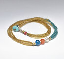 琥珀色とピーコックブルーのビーズはインドの古いシードビーズです。