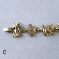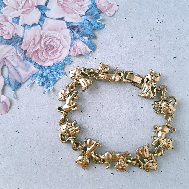 1994年にアメリカのニューヨークにて設立されたBG Fashion Inc.から出されたブランドTOFA(トーファ)の黒ずみ加工が施されたゴールドメタルの色々なポーズをした猫のヴィンテージブレスレットです。