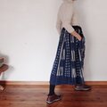 アフリカの藍染は独特の色合いとデザインで、目を引きます。さらっと着ても主役になるアイテムです。
