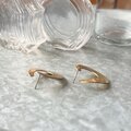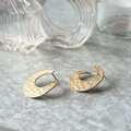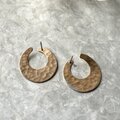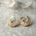 ハンマード加工が施されたゴールドトーンの三日月型オープンフープピアス。