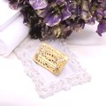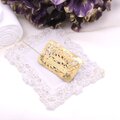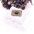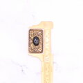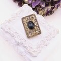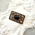 繊細な透かし装飾が施されたレクタングル型のメタルフレームに、中央には艶やかなブラックカボションストーンを配した、クラシカルなフラワーモチーフデザイン。
