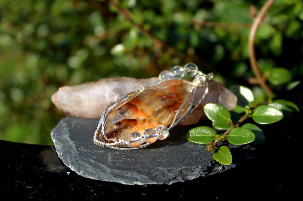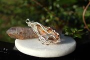 透明感の高い美しい水晶に、内包物がくっきりと見受けられるアンフィボールのタンブルです。ふわふわとしたラビットヘア、天使の羽根のように見えます。見ているだけで心が優しくなり思わず笑顔になってしまう・・・そんな作品に仕上がりました。胸元に着けて癒されてください。