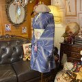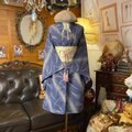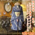 単衣着物リメイク ミニミディ ワンピース/ドレス/洗える化繊 名古屋帯 和洋折衷 瑠璃の静寂 × 幻想の流線美 KW-1264