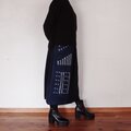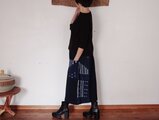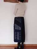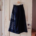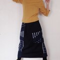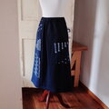 パッチポケット付きの少しタイトなスカートです。ボボ族の伝統藍染布と同系色のニットストレッチを合わせています。