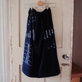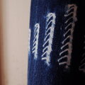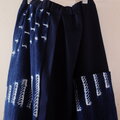 藍染めを制作しているボボ族はアフリカ西部のブルキナファソに住む民族です。手織りの帯状の布を継いで1枚の布にし、絞り染めを施します。天然の藍には防虫効果(蚊除け)もあるそうで、西アフリカ各地で昔から藍染め布が制作されています。デザインや染め方などバライティーに富んでおり、見ているだけでも楽しくなるアフリカンデザインです。