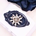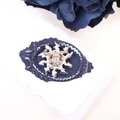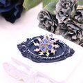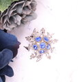 中央に鮮やかなブルーのラインストーンを配し、放射状に広がるメタル装飾が印象的な、スター(スノーフレーク)を思わせるデザイン。