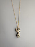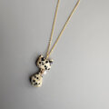 ぷっくりベージュ、黒斑模様 体揺れる猫 天然石ダルメシアンジャスパー ネックレス