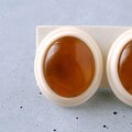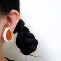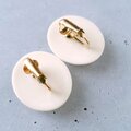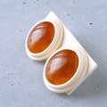 1886年アメリカのニューヨークにて小さな香水会社を創業、1971年に本格的にコスチュームジュエリーの製作を開始したAvon(エイボン)の1987年に販売された“cosmopolitan collection”のアイボリーとアンバートーンのオーバル型のプラスチックのヴィンテージイヤリングです。