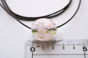 とんぼ玉のサイズは24mm×22mmです。重さは20gです。