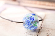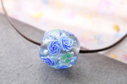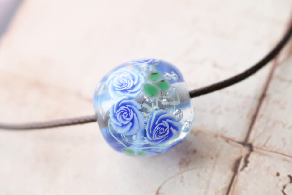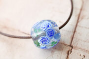 泡を入れた透明の地に、ブルーローズを咲かせました。