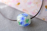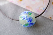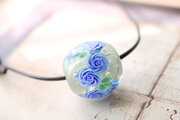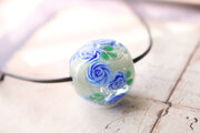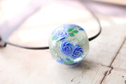 泡を入れたクリーム色の地に、ブルーローズを咲かせました。