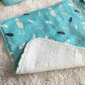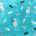 ターコイズ色の地に、小さなハシビロコウとお魚が散りばめられている柄のダブルガーゼと、ふんわりした肌触りのタオル地を合わせて、ハンカチを作りました。